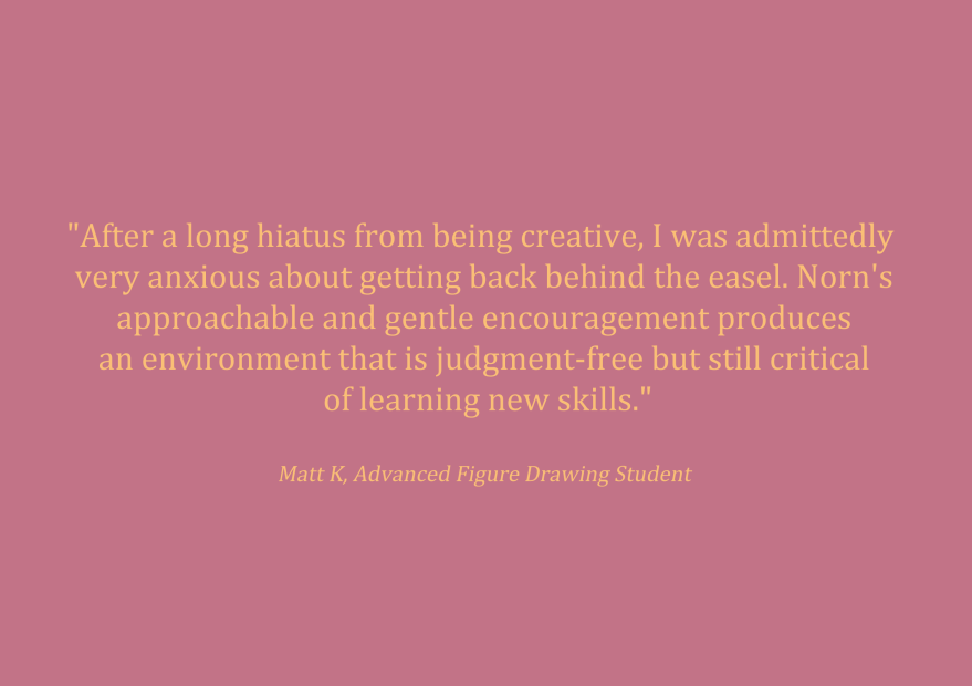 Student Work Since 2021, Norn has taught community drawing classes for adults, junior, and senior high school students at Abington Art Center and Moore College of Art & Design with an emphasis on life drawing and anatomy. Share this: Share on X (Opens in new window) X Share on Facebook (Opens in new window) Facebook Like Loading...